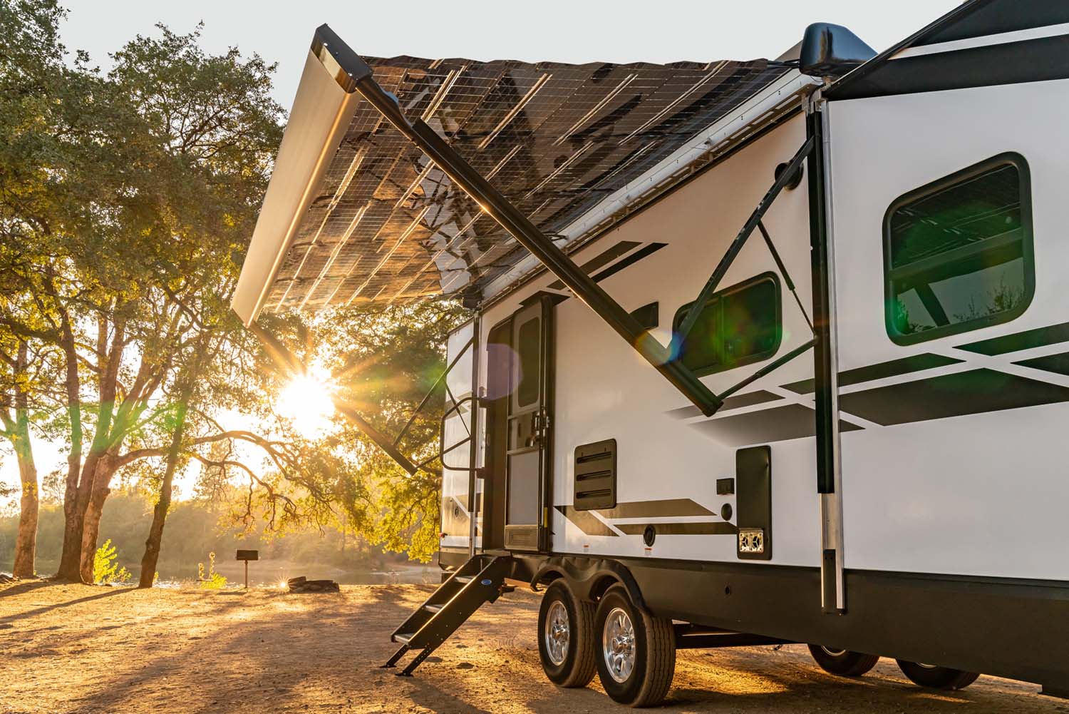 “The Xpanse™ Solar Awning…can provide up to 1.2 kW of solar power to power up an RV full of appliances while it shades your comfy seats below.” –